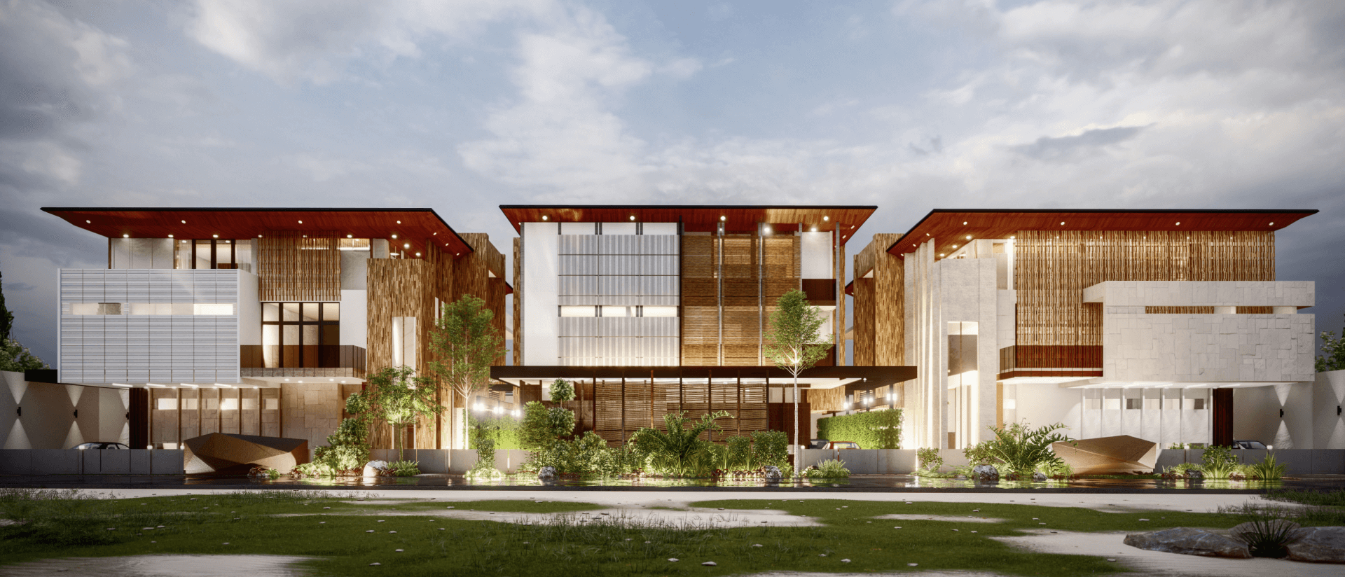 A three-house design nestled in the South of Metro Manila, this concept is anchored on creating a stable, comfortable, and approachable space grounded by cohesive style elements. The spaces are defined by the creative use of lines—vertical, horizontal, and curved—as well as a play on light to set the mood and add drama. Sleek finishes make the indoor areas look polished while natural materials add a relaxing touch to the exteriors. Open layouts and wide openings provide natural ventilation for an airy, homey feel.