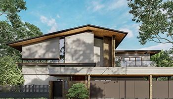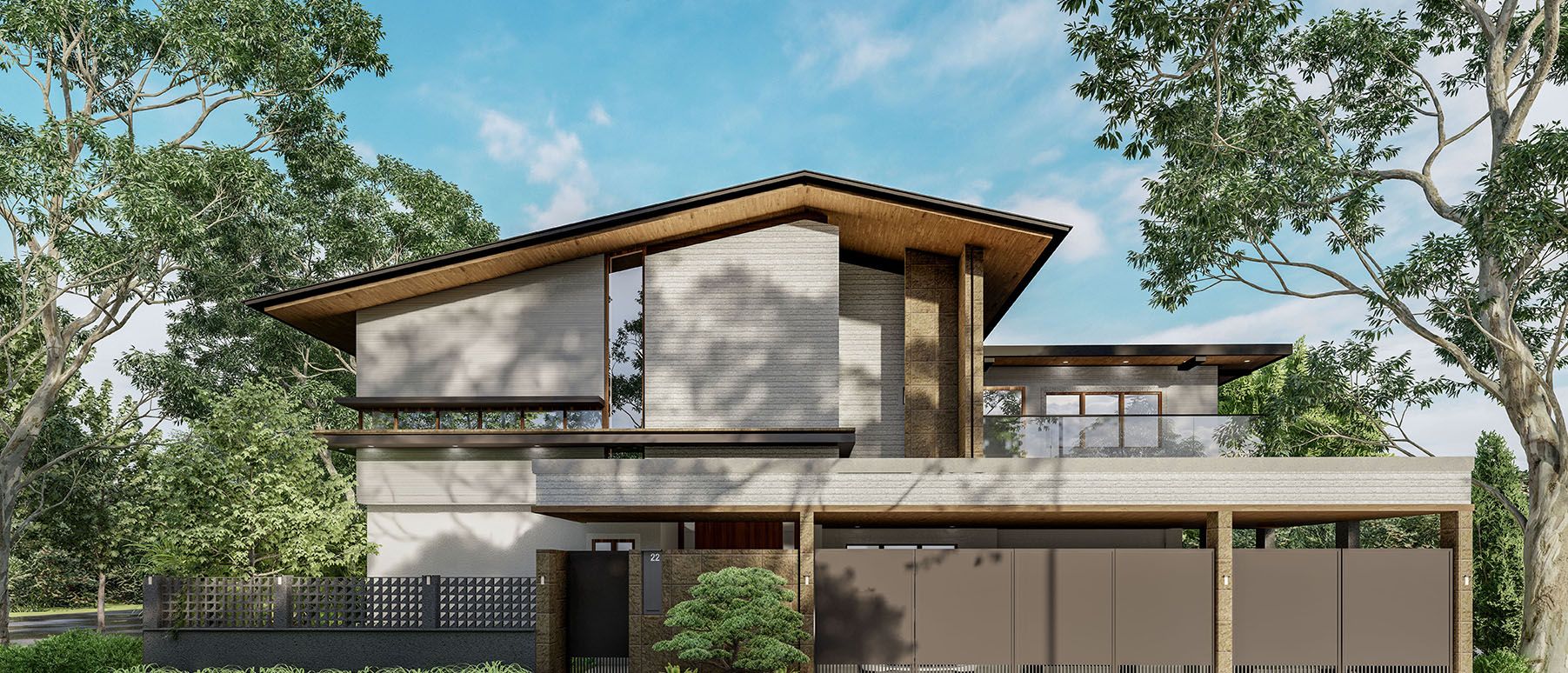 A stylish city home, this spacious two-storey house weaves together sleek and textured finishes—utilizing a combination of wood, concrete, and marble materials—to create an upscale yet cozy abode. The clean, sophisticated theme is consistent throughout: from the expansive living room and dining area to the second-floor bedrooms. Tasteful without being stiff, it’s a dream house that’s rich in both luxury and comfort.
